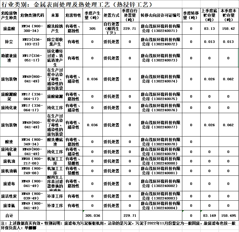 為了貫徹落實(shí)《河北省生態(tài)環(huán)境廳關(guān)于進(jìn)一步加強(qiáng)涉固險(xiǎn)廢物企業(yè)信息公開(kāi)的通知》和《中華人民共和國(guó)固體廢物污染環(huán)境防治法》第二章第二十九條規(guī)定,涉危企業(yè)應(yīng)當(dāng)依法及時(shí)公開(kāi)環(huán)境污染防治信息、主動(dòng)接受社會(huì)監(jiān)督,現(xiàn)將我公司2023年第三季度(7-9月份)危廢情況做如下公開(kāi):