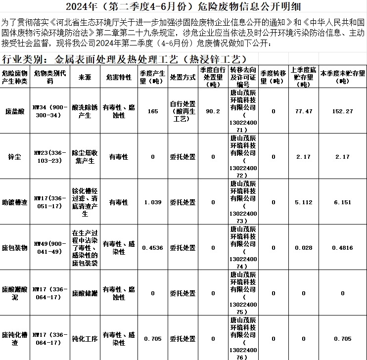 2024年(第二季度4-6月份)危險(xiǎn)廢物信息公開(kāi)明細(xì)